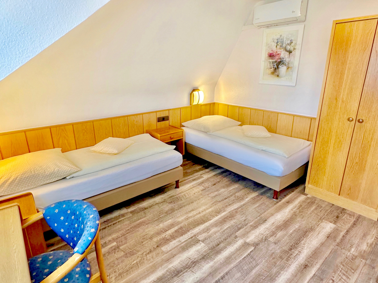 Our hotel has 26 fully equipped non-smoking rooms for a wide range of requirements and has high-quality beds with a high level of sleeping comfort. With the double rooms we offer a high degree of flexibility. The rooms have a bathroom with shower and toilet, hair dryer, desk, free WiFi, TV, telephone and can be reached by elevator.